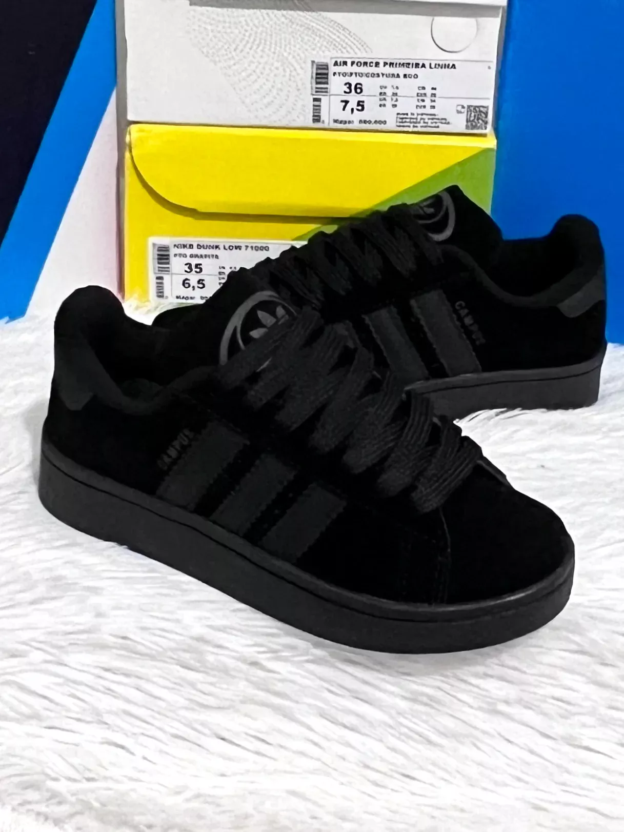 The shoes in the image are the Adidas Campus, a timeless classic that evolved from its 1970s basketball roots into a modern streetwear staple. Featuring a sleek black suede upper, the signature three white stripes, and the “CAMPUS” text on the side, this model embodies both heritage and versatility in design.