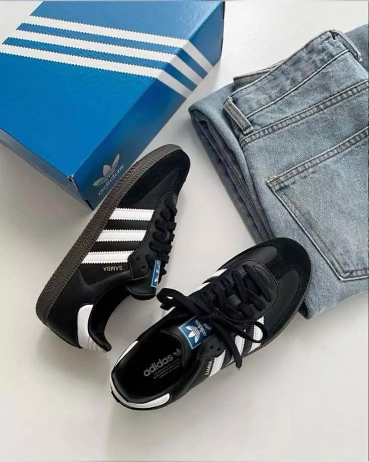 The Adidas Samba OG “Black / White / Gum” is an iconic silhouette that blends sport and streetwear heritage. Originally designed in the 1950s for indoor football, the Samba has evolved into a timeless fashion essential. This version features a sleek black leather upper with classic white serrated three-stripe detailing and a durable gum rubber outsole, offering both comfort and unmistakable retro appeal.