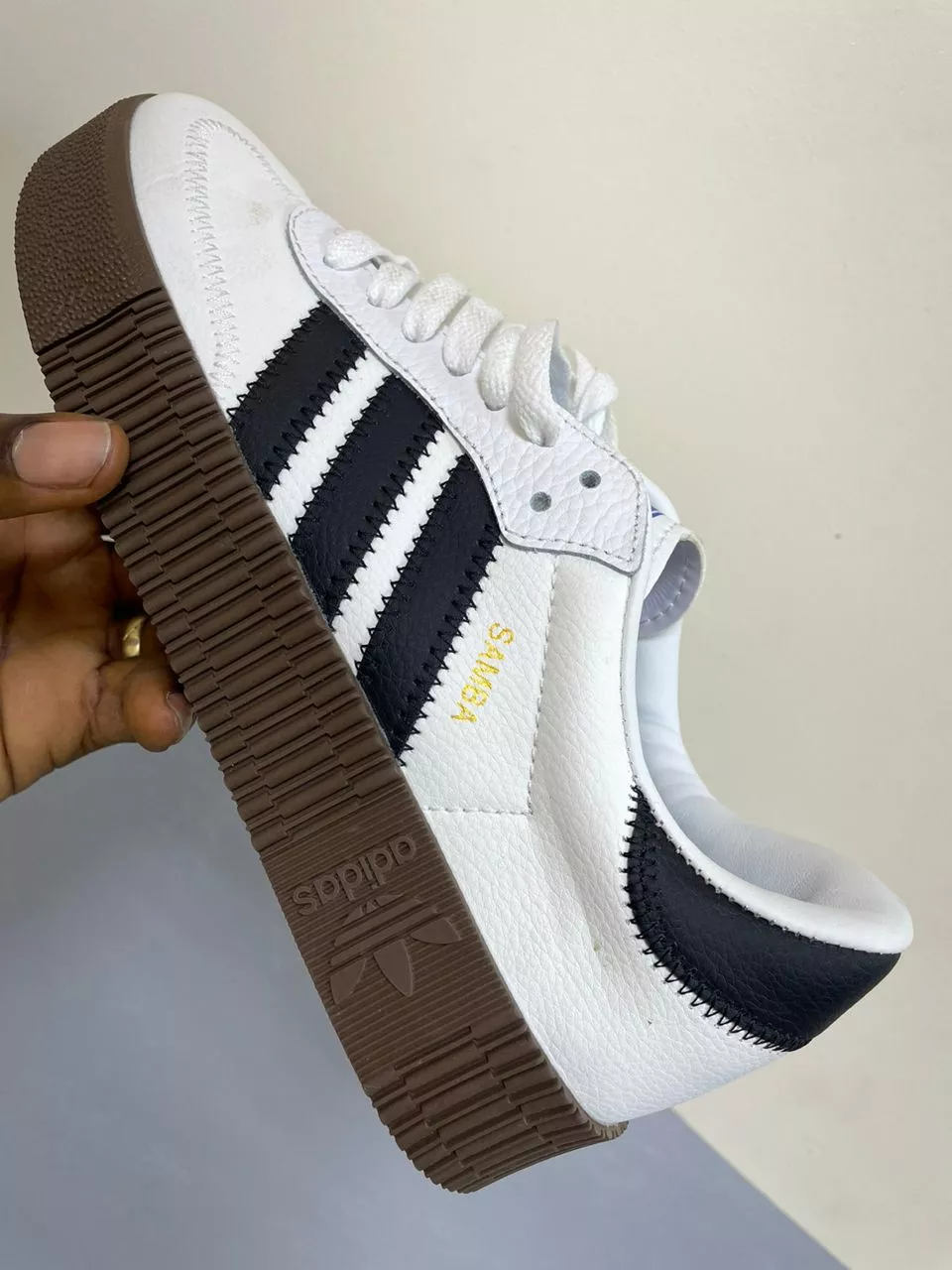 The Adidas Sambarose, also known as the Samba Double Sole, reimagines the timeless Adidas Samba with a bold, elevated twist. Featuring a white leather upper, iconic black 3-Stripes, and a gum rubber platform outsole, these sneakers blend classic heritage with modern street style. Designed exclusively for women, they offer both comfort and confident height for everyday wear.