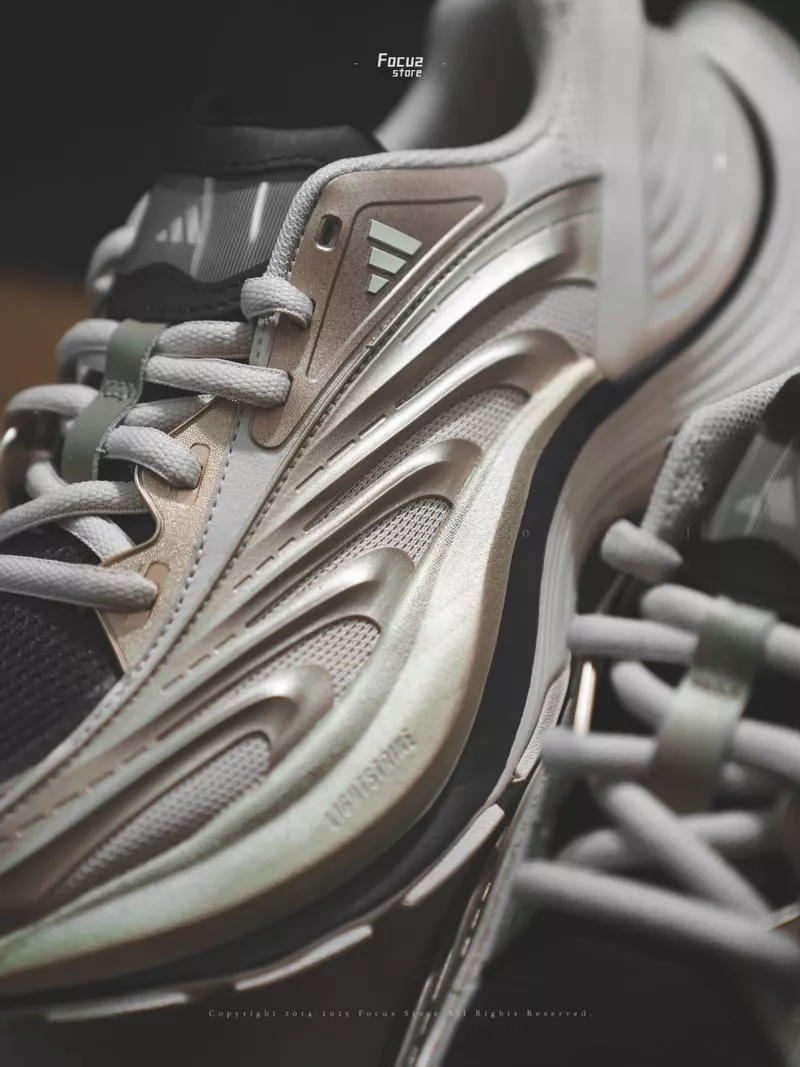 These Adidas XLG Metawave sneakers feature a bold, futuristic design with a breathable chalk-white mesh upper, metallic silver overlays, and sharp black detailing. Built for comfort and style, they deliver a chunky aesthetic with lightweight cushioning.