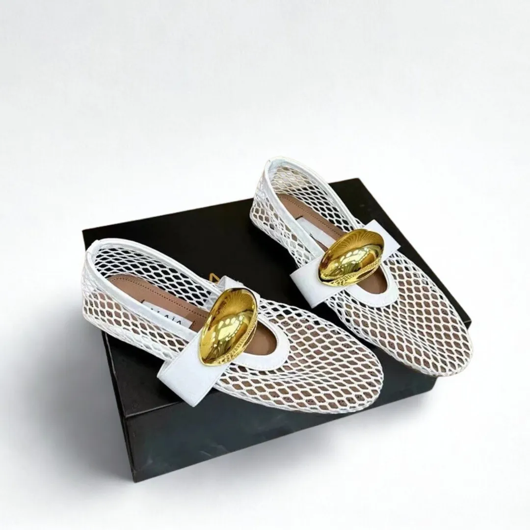 Embrace lightness and grace with the Alaïa White Ballet Flats — a luxurious take on a classic silhouette. Designed for the woman who values understated elegance, these flats offer a soft leather construction and clean lines that effortlessly elevate both casual and formal looks. The bright white tone adds freshness to your outfit, making these flats a standout yet timeless accessory. Style them with neutrals or bold colors for a striking finish.