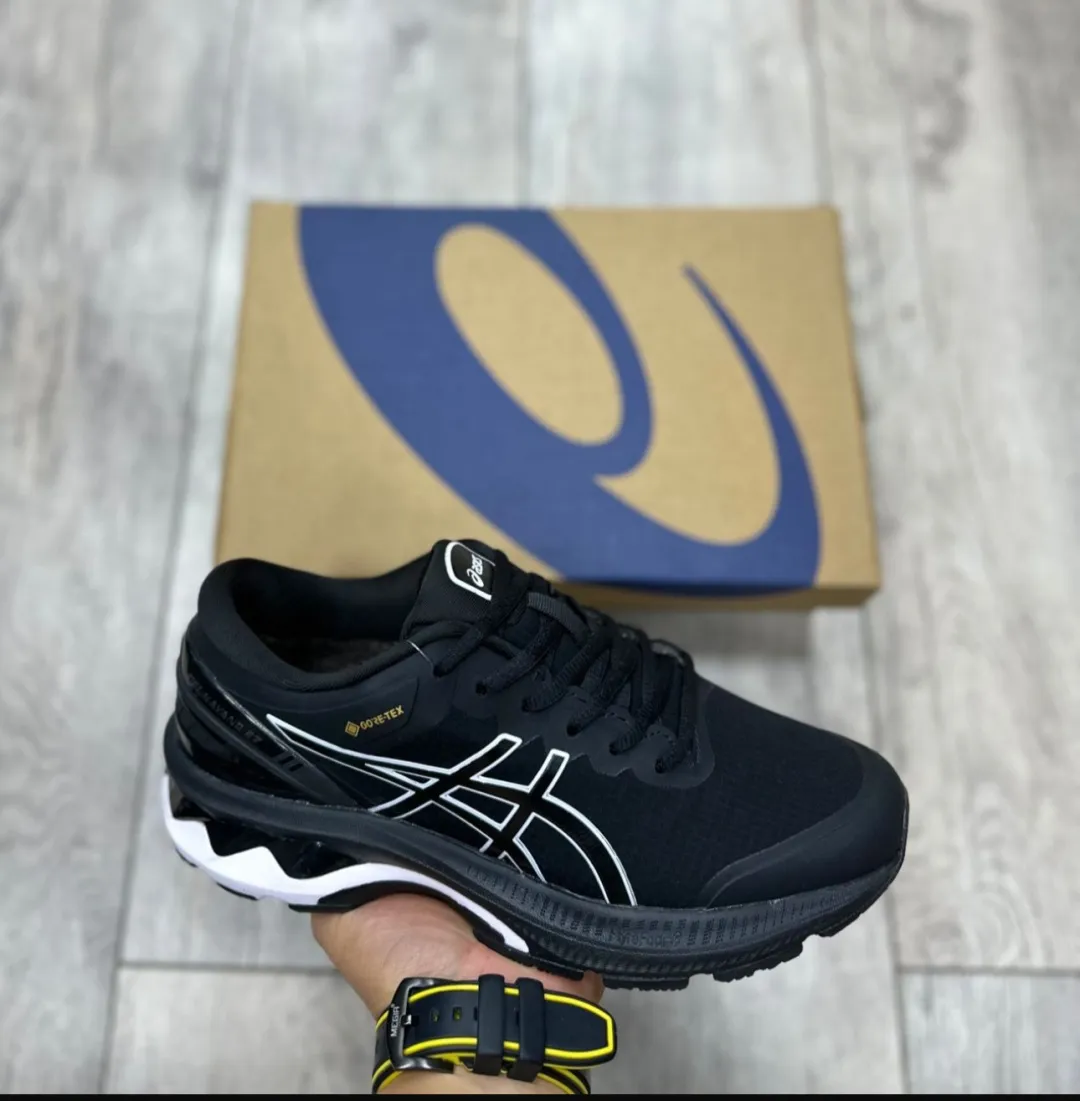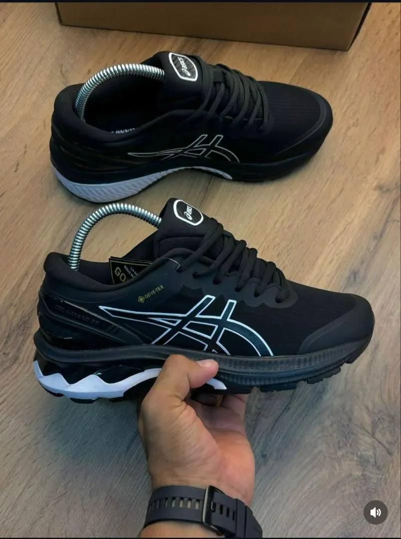 The Asics Gel-Kayano 27 delivers premium stability and cushioning for runners who need reliable support. Designed with advanced GEL technology and a sleek performance silhouette, this model offers excellent shock absorption, comfort, and durability. The black colorway with white and silver accents gives it a clean, sporty look suitable for both running and everyday wear. Some versions are available with Gore-Tex for added weather protection.