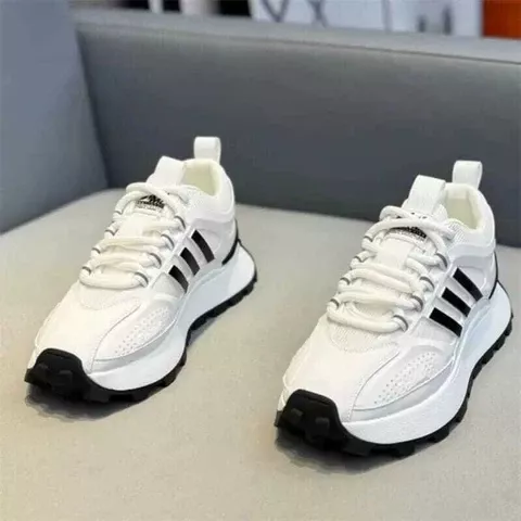 The Bailleli Classic White & Black Sneaker features a clean, modern aesthetic with a predominantly white upper accented by bold black stripes and a black outsole. A subtle grey midsole detail adds depth to the overall design. Built for everyday comfort, this sneaker blends breathable materials with a supportive chunky sole, making it perfect for casual wear, walking, and street-style outfits.