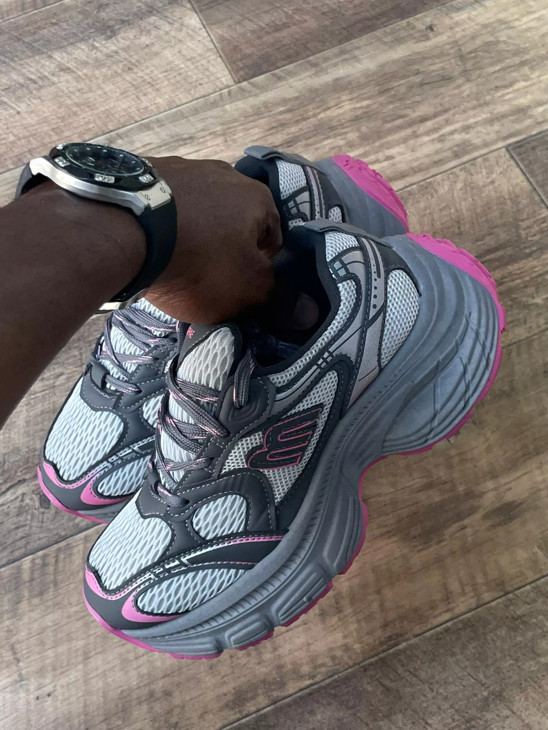 These Balenciaga 10XL Sneakers feature an oversized, futuristic silhouette paired with a bold grey, pink, and black color mix. Designed for statement style and all-day comfort, they combine premium materials with Balenciaga’s iconic exaggerated aesthetic.