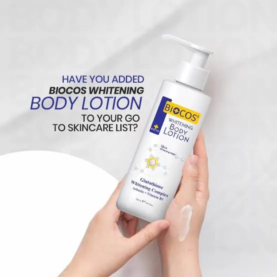 - Biocos whitening Lotion is not just a whitening Lotion. It is a solution of all your skin problems. - Biocos whitening lotion can be used as a sunscreen as well. - Biocos added collagen in their whitening lotion that reduce premature ageing and rejuve