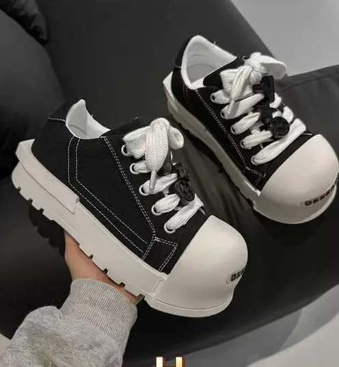 Black and White canvas Platform Sneakers