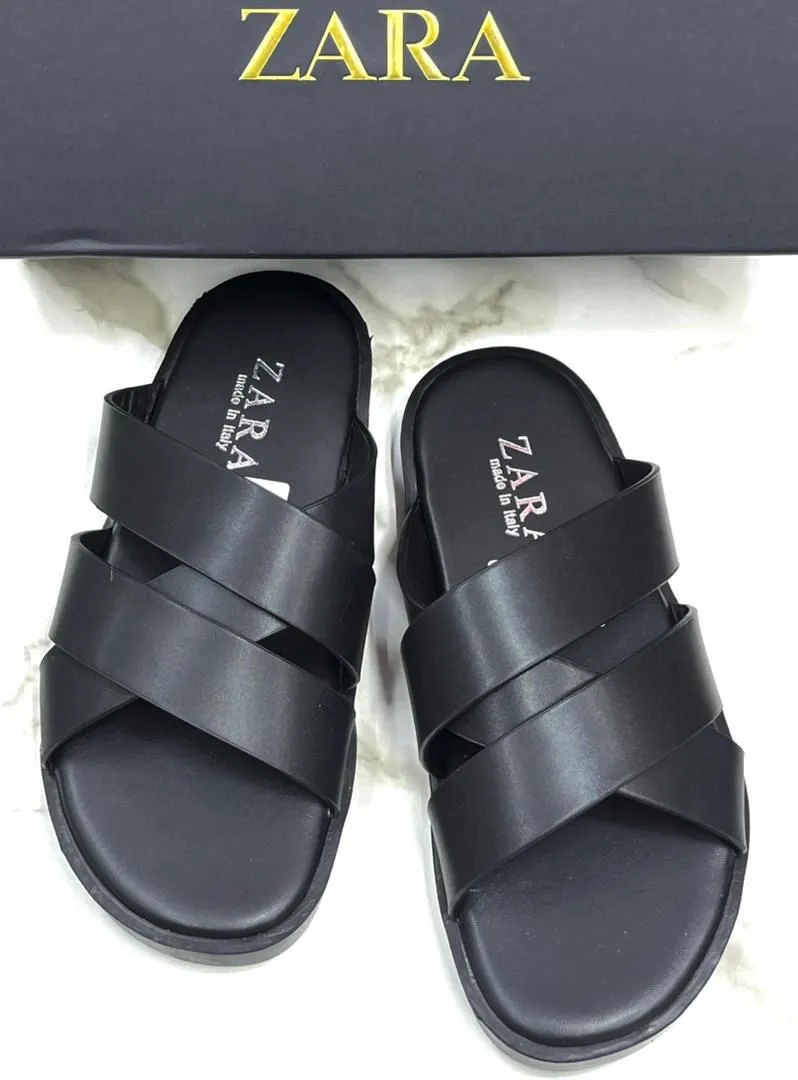 Black leather Zara cross-strap sandals