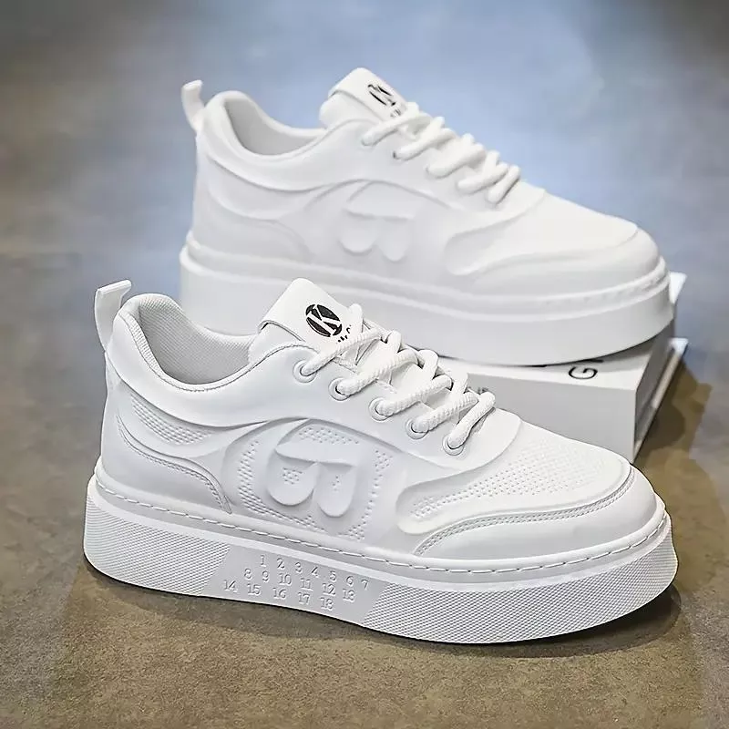 Boaobaihuo's Men's Platform Sneakers in classic white are the ultimate blend of comfort and style. These sneakers are designed with a thick platform sole, perfect for any casual occasion.