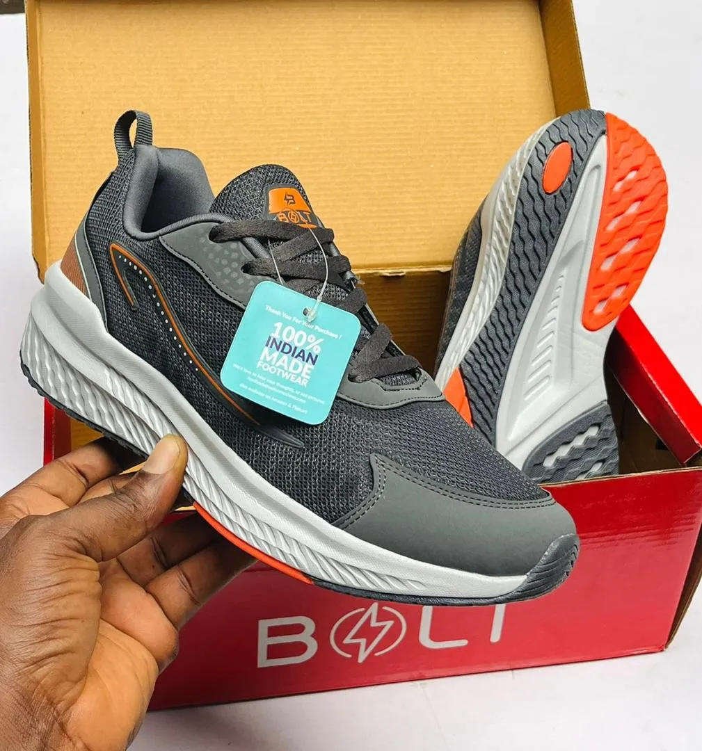 Bolt Brand Sneakers in Grey & Orange Design