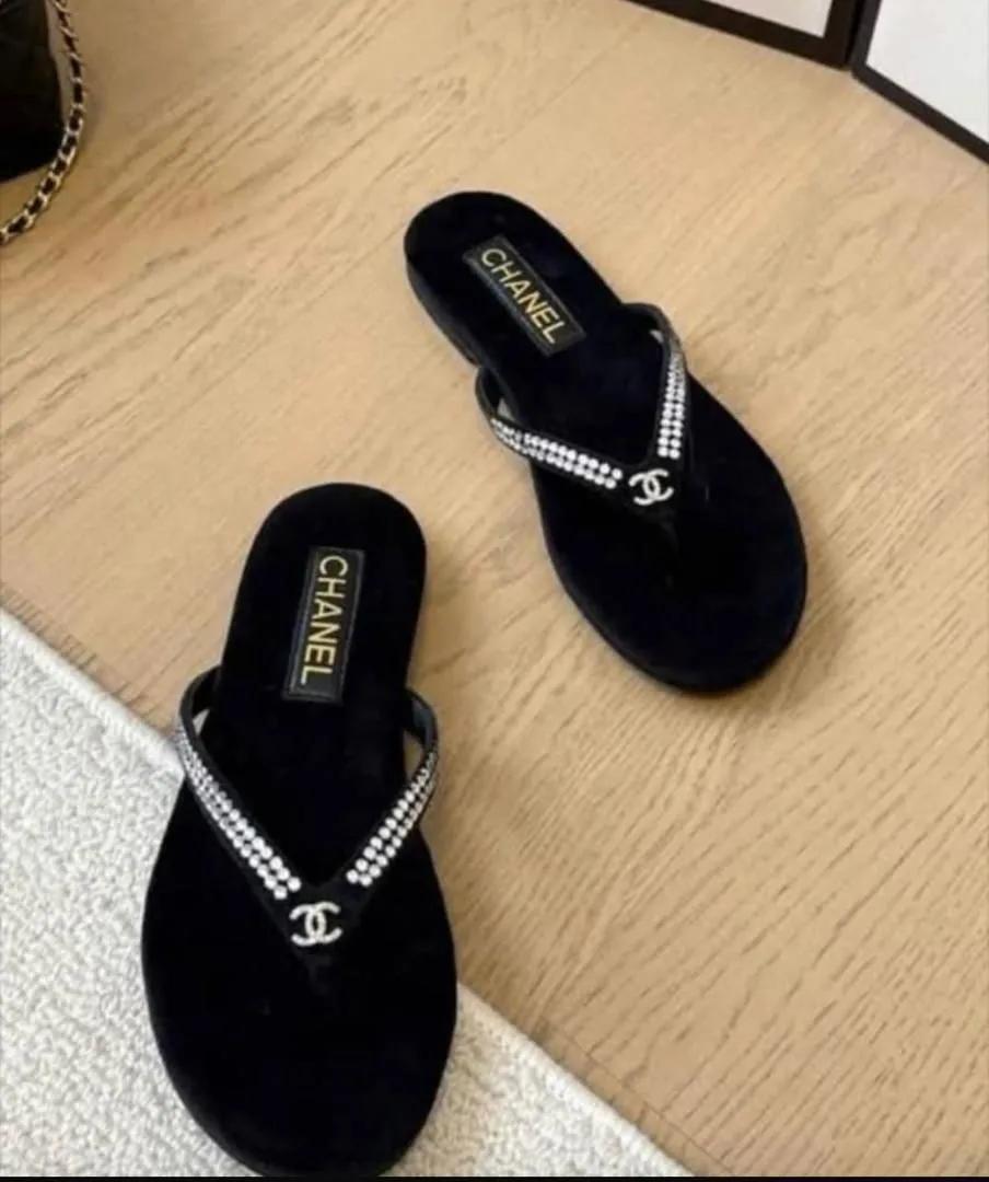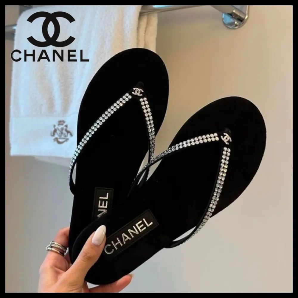 Chanel Crystal Logo Thong Sandals