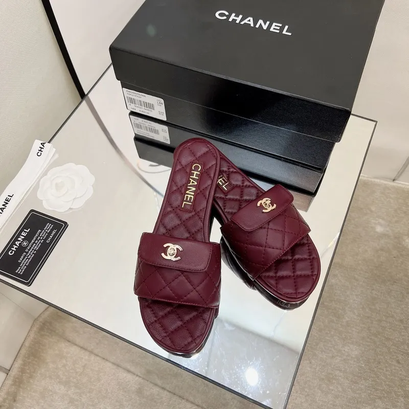 Chanel flat female slides crafted in quilted leather, finished with the iconic gold-tone interlocking CC logo. A timeless luxury slide that blends elegance with everyday comfort.
