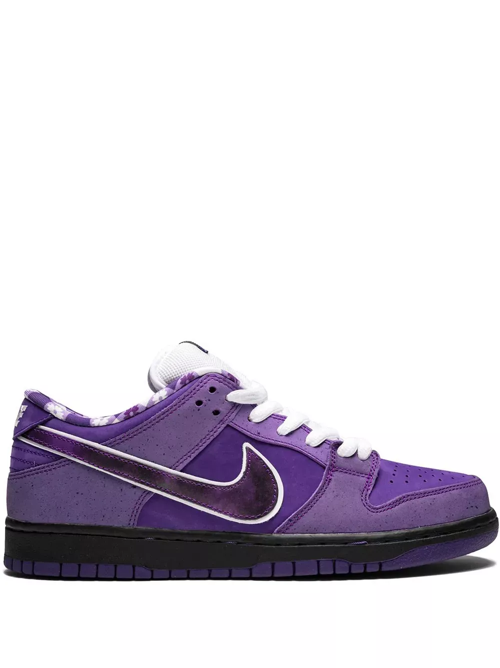 The Concepts x Nike SB Dunk Low “Purple Lobster” features a striking Voltage Purple upper with signature lobster-themed details. Its premium suede build, speckled overlays, and iconic gingham lining deliver a bold skate-inspired look with collectible appeal.