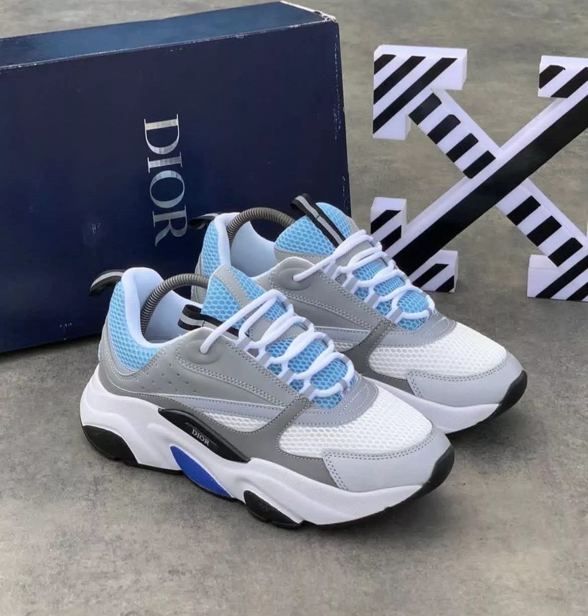 The Dior B22 sneaker combines athletic influence with luxury craftsmanship, featuring a layered multi-paneled upper and a bold sculpted sole. With prominent Dior branding and a chunky silhouette, it delivers a modern statement in high-fashion footwear.