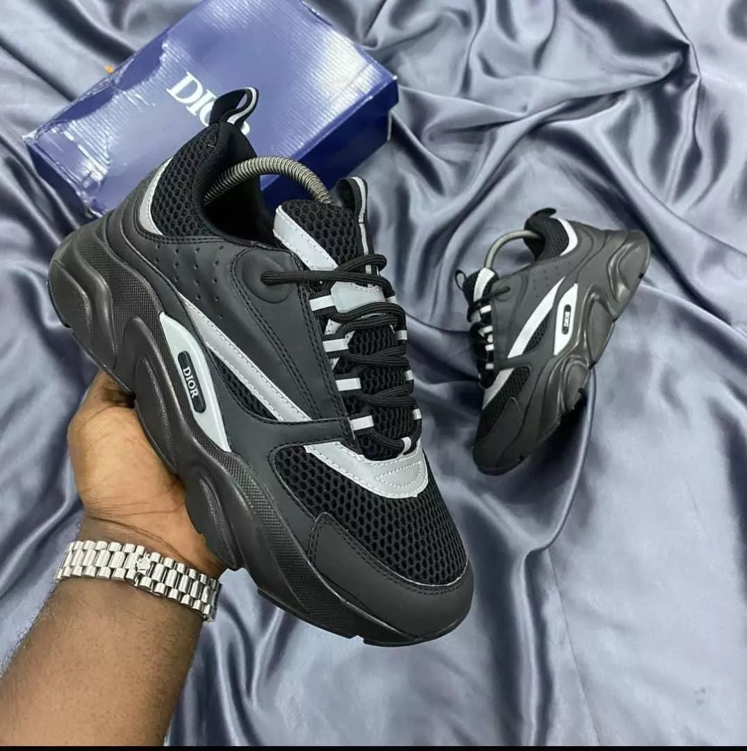 The Dior B22 sneaker blends retro-inspired design with luxury detailing. Featuring layered mesh and calf leather construction, a sculpted chunky sole, and round laces, it delivers a bold statement in modern fashion. The embossed “DIOR” signature on the side adds a distinctive finishing touch