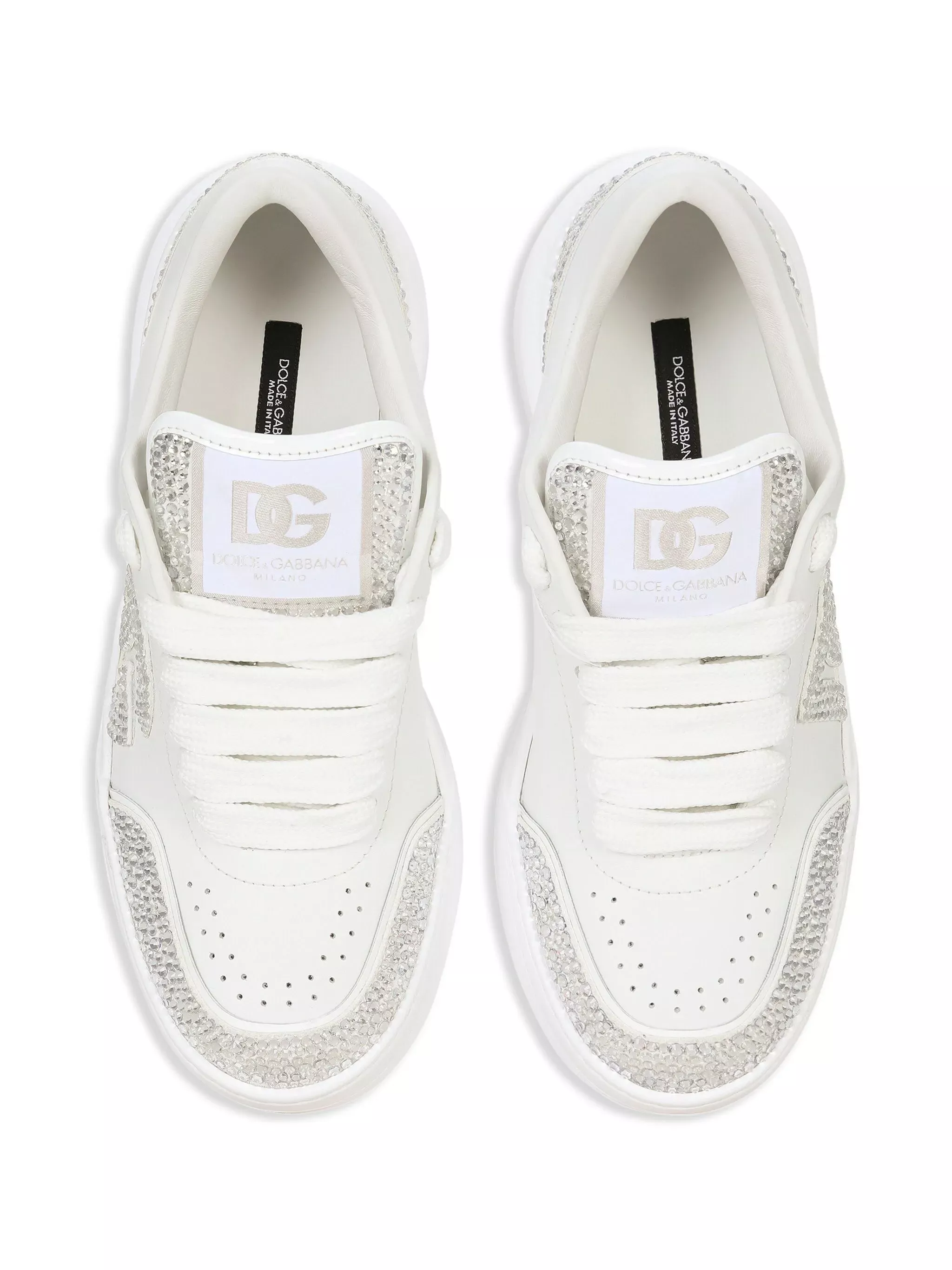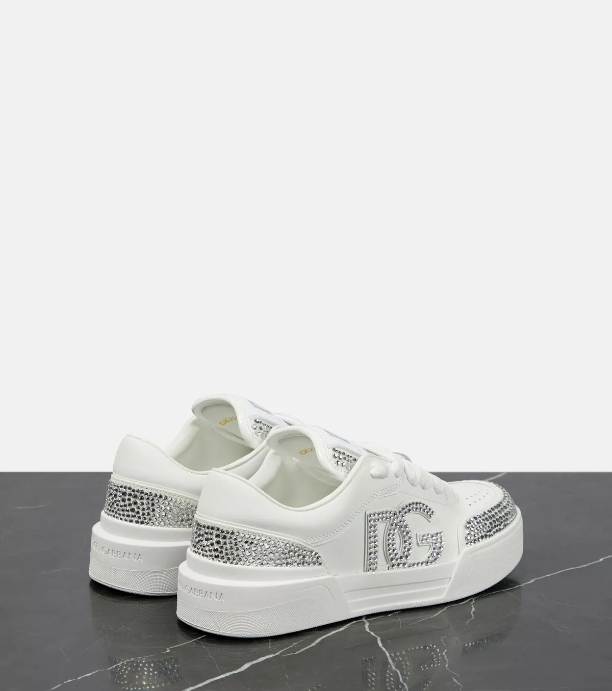 Experience Italian luxury with Dolce&Gabbana's New Roma embellished leather sneakers. These shoes deliver both style and comfort with their high-quality leather and unique embellishments.