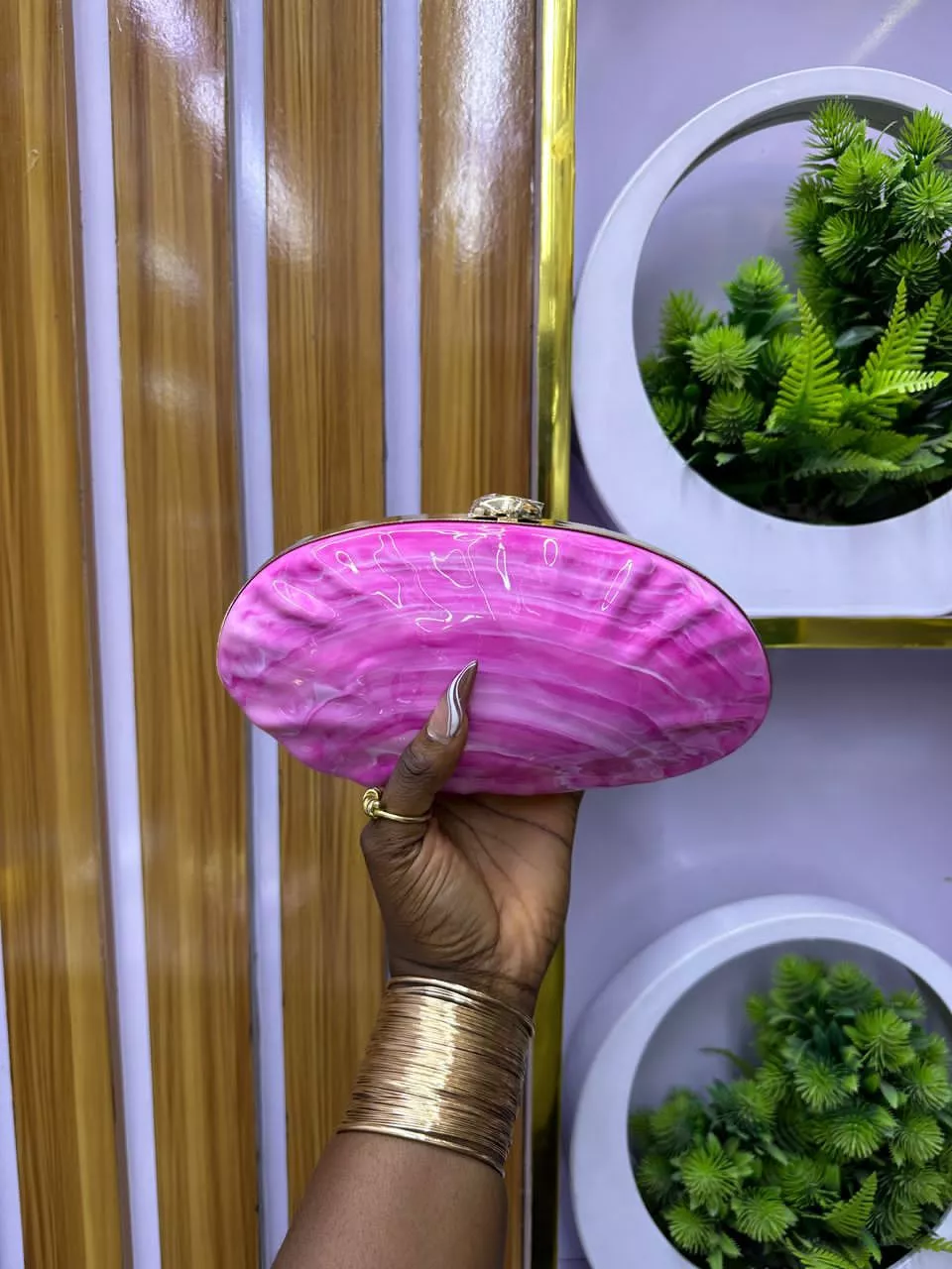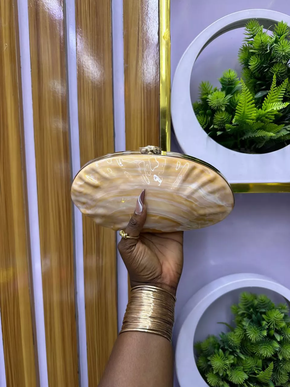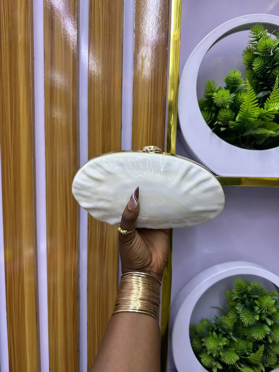 Make a graceful statement with the Shell Clutch Bag, beautifully crafted in a seashell-inspired shape. Compact, stylish, and perfect for weddings or special events, it adds a touch of uniqueness and class to your outfit.