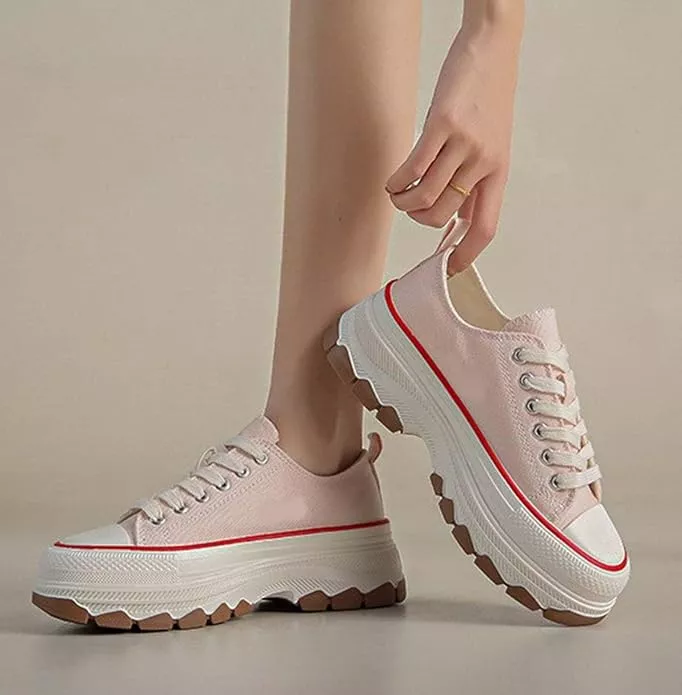 IELGY Women's Thick Heel Sneakers (Pink)