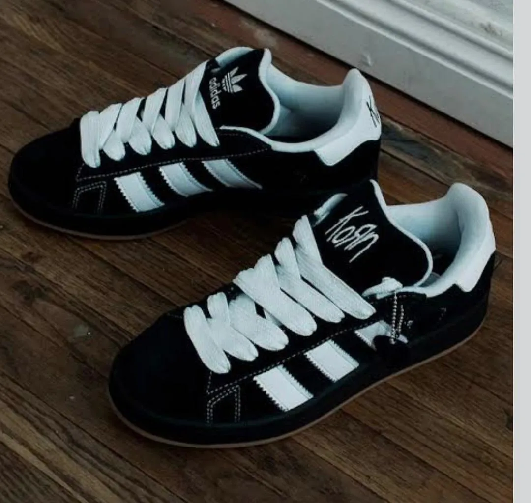 The Korn x Adidas Campus 00s 'Black/White Sneakers' are a perfect blend of comfort and style. These shoes are a unique collaboration between Adidas and the band Korn, offering a classic 00s look with a modern twist. Ideal for casual wear.