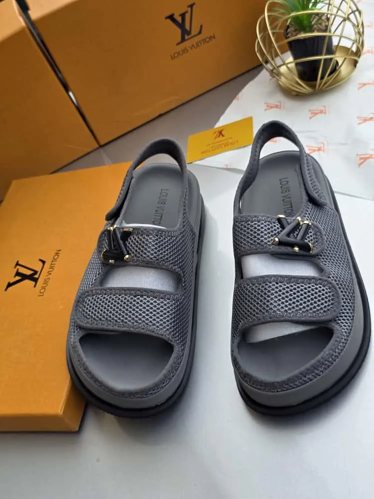The Louis Vuitton High-Sole Sandal in grey delivers a refined blend of luxury and contemporary street style. Designed for men, this sandal features a bold elevated sole paired with a sleek upper, offering both comfort and statement appeal. Finished with Louis Vuitton branding on the insole, it’s an ideal choice for relaxed yet premium everyday wear.
