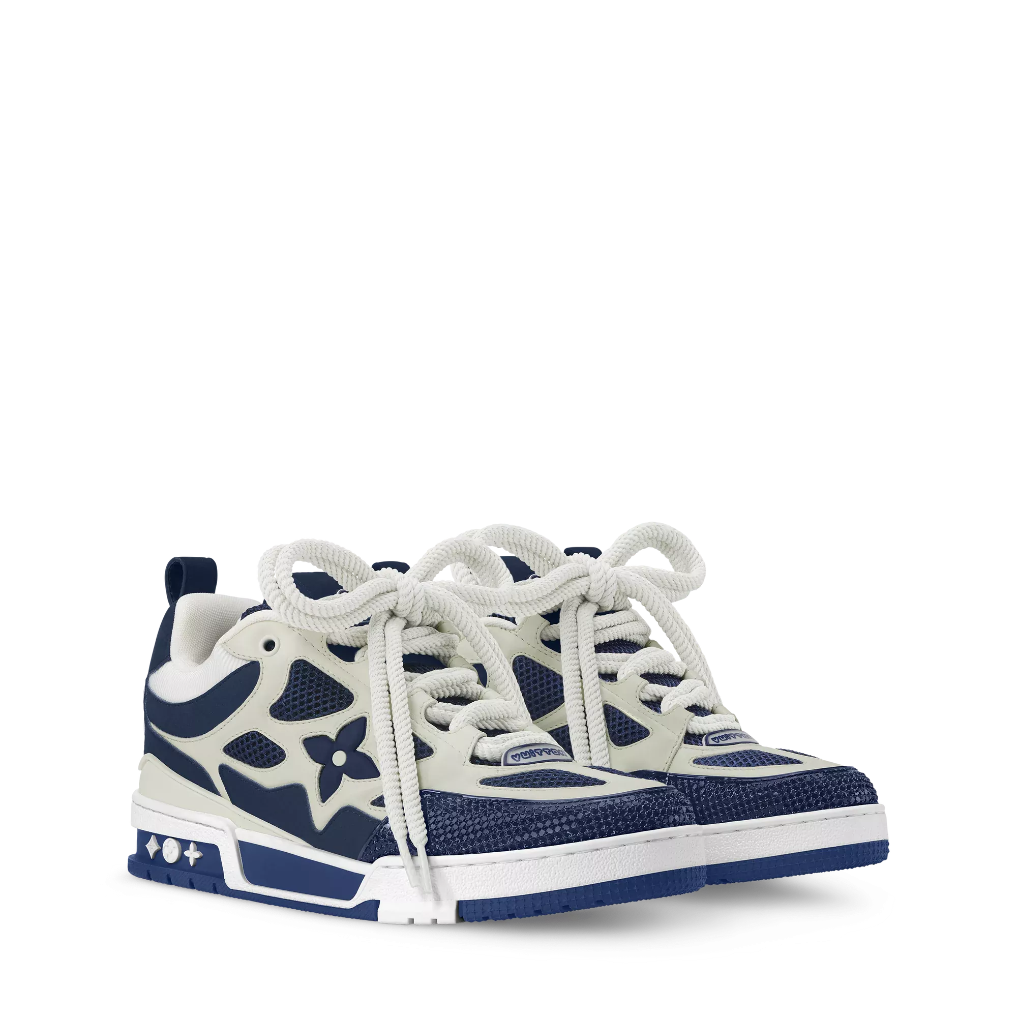 These Louis Vuitton LV Skate Sneakers feature a premium navy blue upper with crisp white accents, blending luxury styling with a sporty skate-inspired design. Crafted for comfort and standout aesthetics, they offer a bold designer look suitable for casual and elevated outfits.