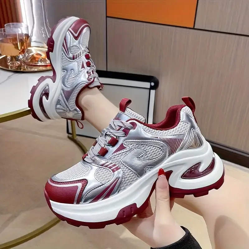 Metallic Mesh Chunky Platform Sneakers – Sliverr/Red