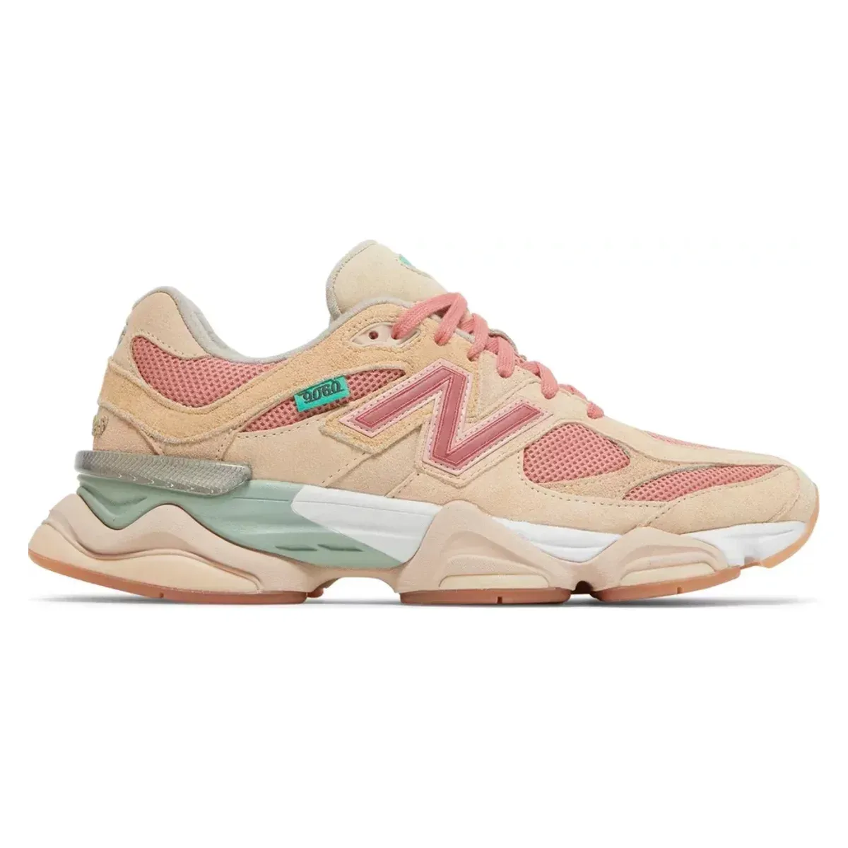 The New Balance 9060 x Joe Freshgoods “Penny Cookie Pink” features breathable mesh with suede overlays in a soft pink and brown palette. Finished with ENCAP cushioning and signature JFG branding, it delivers comfort and standout streetwear style.