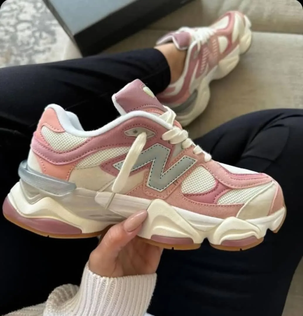 The New Balance 9060 in Rose Pink features a breathable mesh base with suede overlays and soft cream sole accents. Designed for comfort and modern street style, it blends cushioning support with a standout pastel look.