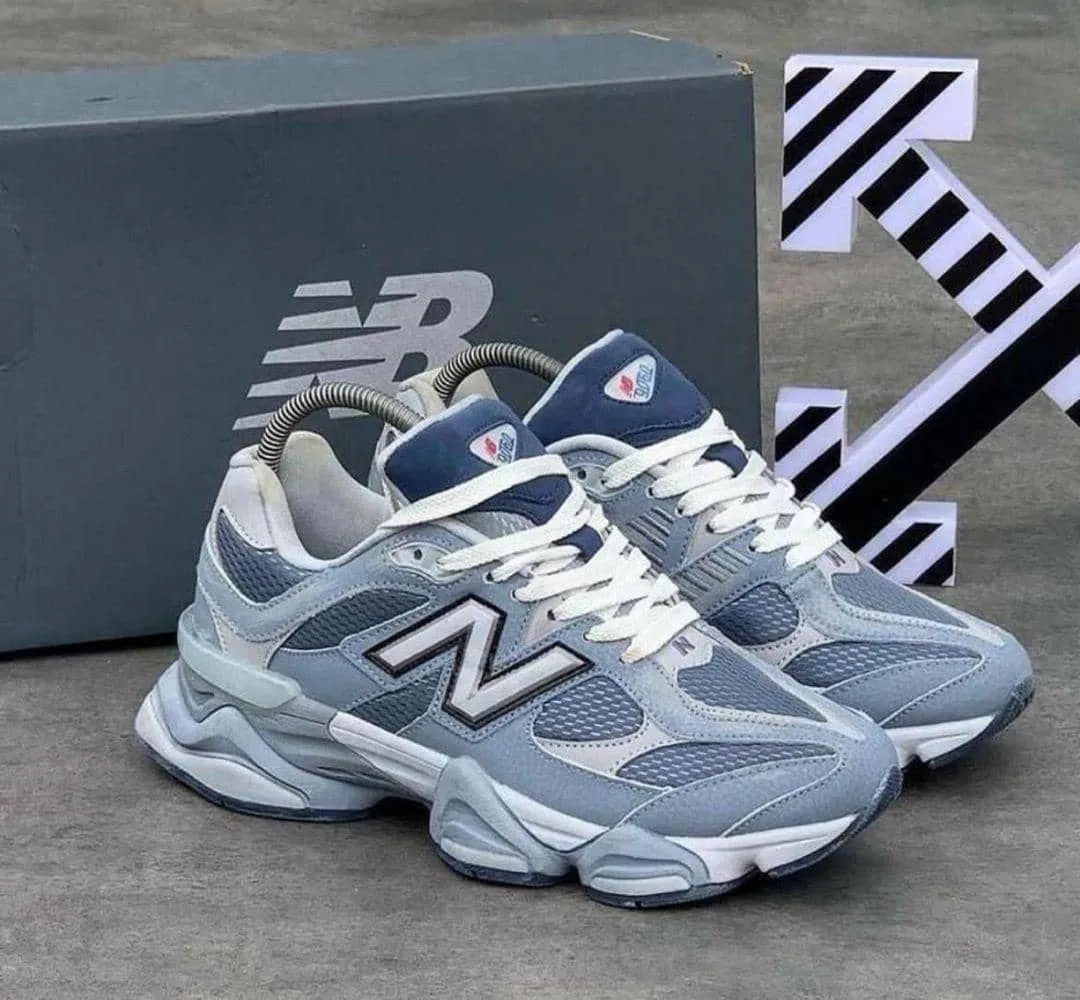 Modern lifestyle sneakers combining layered grey tones with cool blue accents and metallic detailing. Designed with a sculpted chunky midsole and breathable mesh upper, delivering bold Y2K styling and everyday comfort.