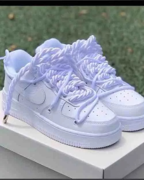 The timeless Nike Air Force 1 in classic white, featuring its iconic silhouette with a premium leather upper, rope-style laces, and the signature “AIR” branding on the midsole.