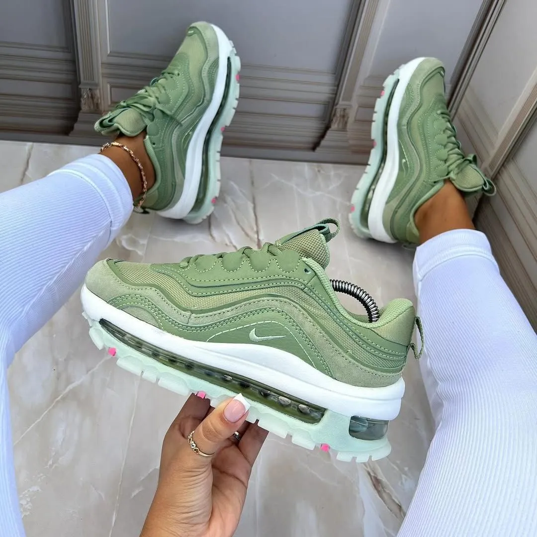 The Nike Air Max 97 Futura in Oil Green blends iconic Air Max heritage with modern, utility-inspired design. Featuring textured materials and a muted green palette, this sneaker delivers everyday comfort, durability, and standout street style, powered by full-length Air cushioning.