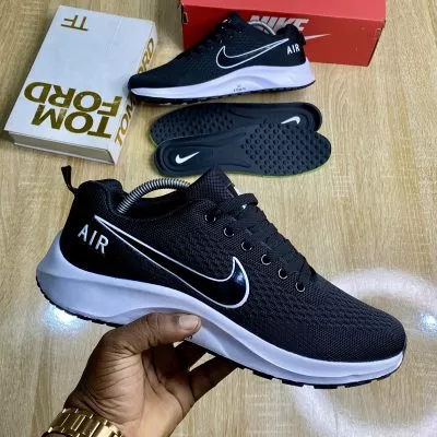 These Nike Air Zoom trainers feature a breathable black mesh upper paired with a cushioned white midsole for responsive comfort. Designed for running and everyday athletic use, they offer lightweight support, durable traction, and the signature Zoom Air feel.
