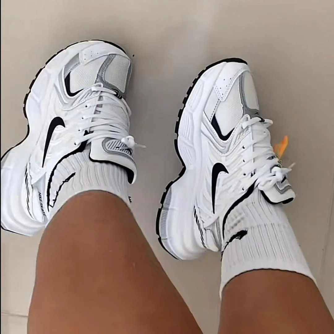 These Nike Skate V2 sneakers feature a clean white base with sharp black detailing for a sporty, modern look. Designed in a skate-inspired silhouette, they deliver everyday comfort and versatile unisex styling.