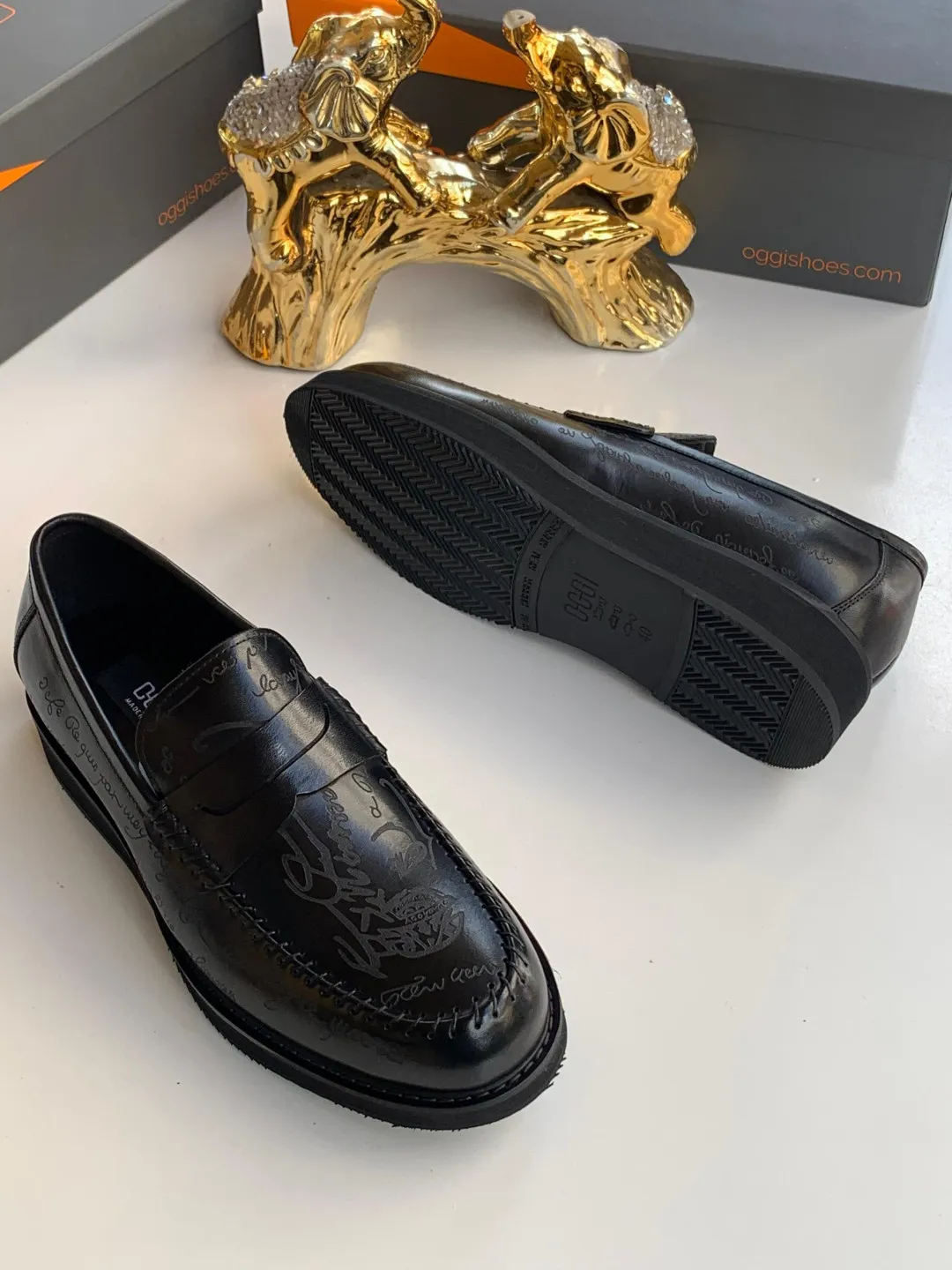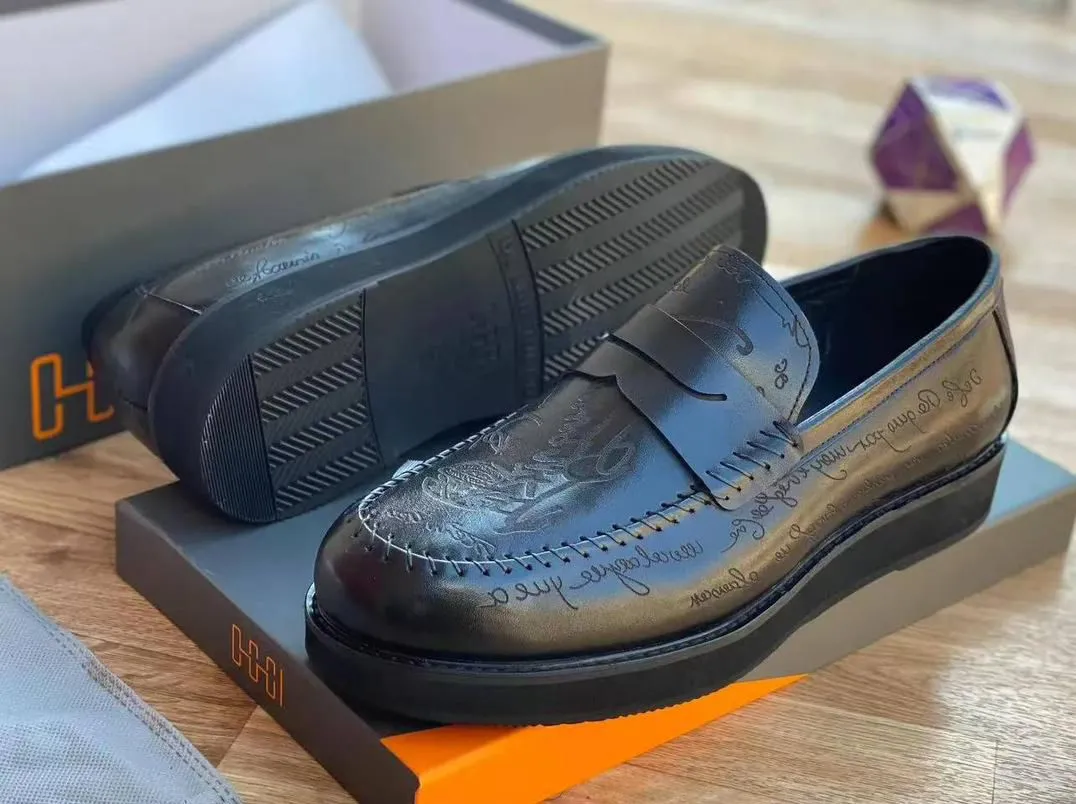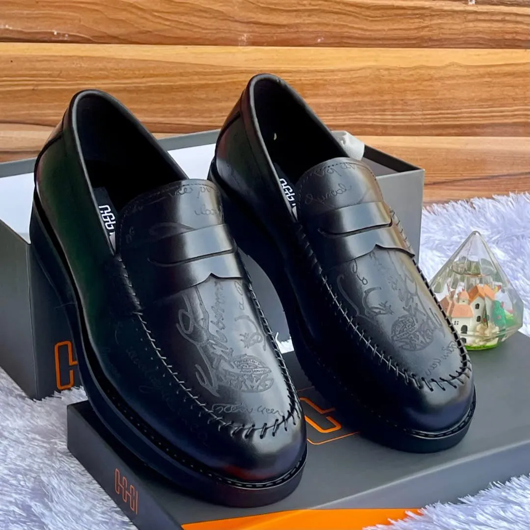 OGGI Script-Patterned Penny Loafers – Black