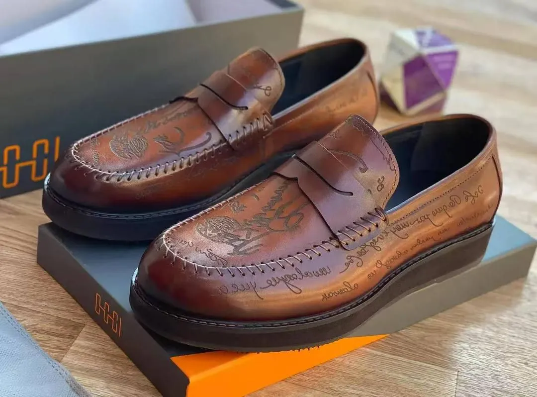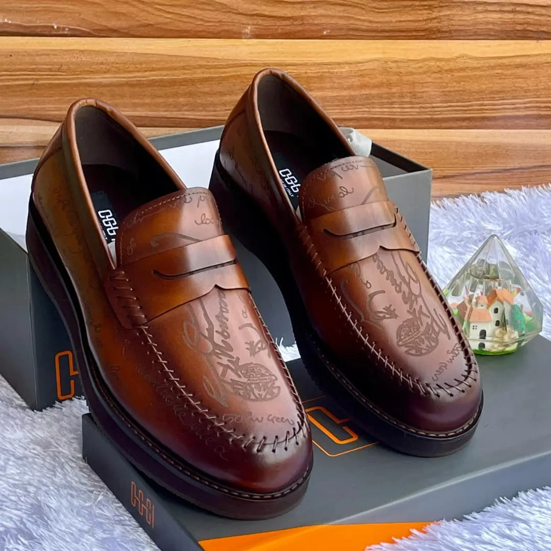 OGGI Script-Patterned Penny Loafers – Brown