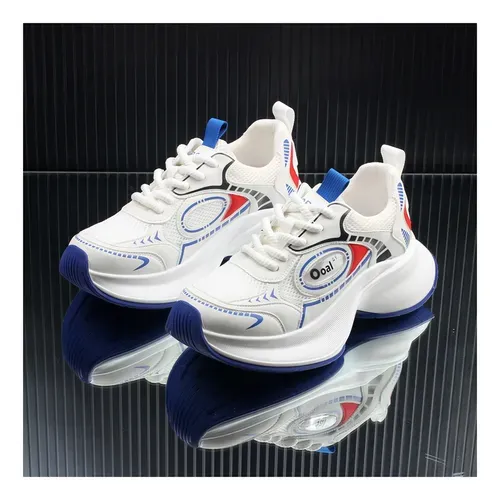 Ooal" Brand white mesh and Blue/Red Sneakers.