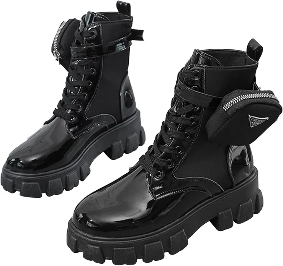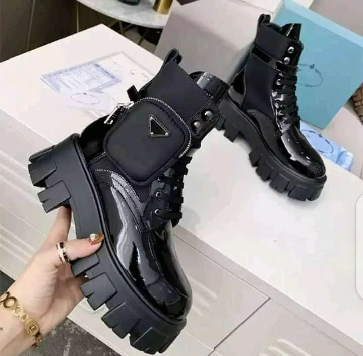 Prada Monolith Leather Combat Black Boots