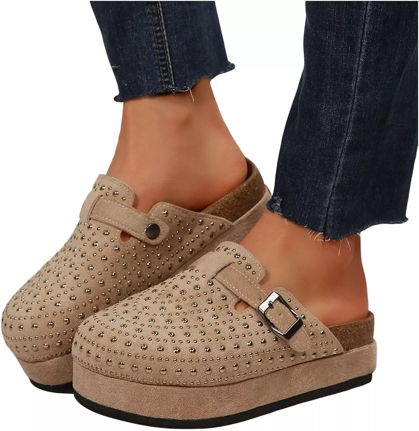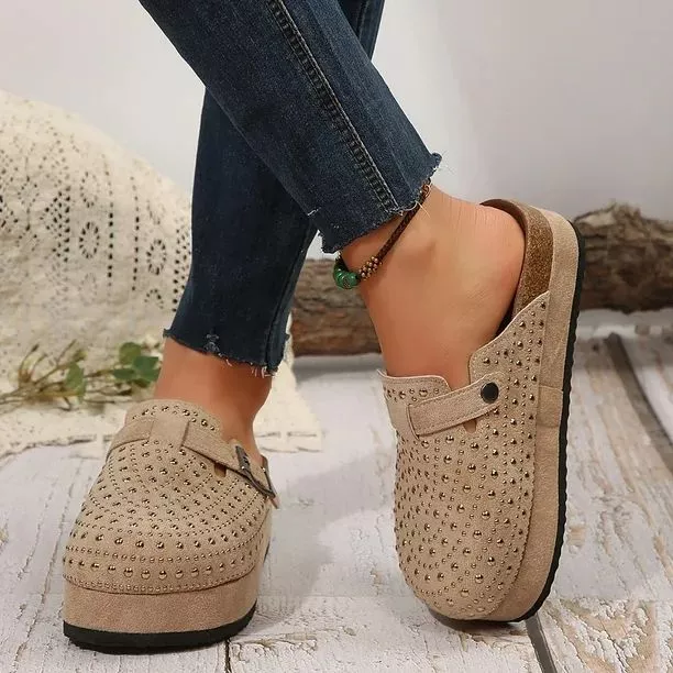 Rhinestones Platform Mules Clogs for Women Brown