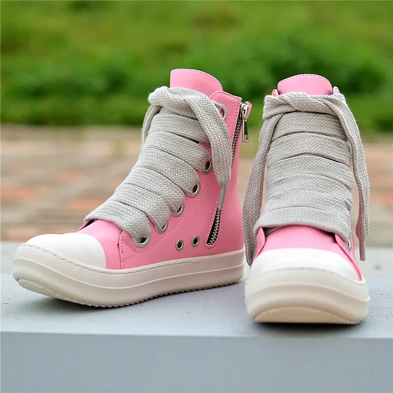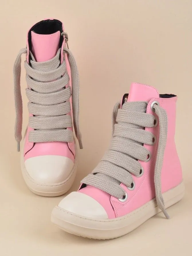 Rick Owens High Top Jumbo Lace Sneakers Pink