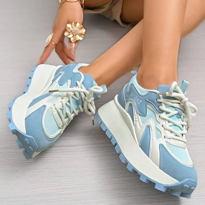 Sfianz platform sneakers feature a fresh light blue and white colorway with a stylish elevated sole. Designed for everyday wear, they combine a sporty look with lightweight comfort and a modern casual vibe.