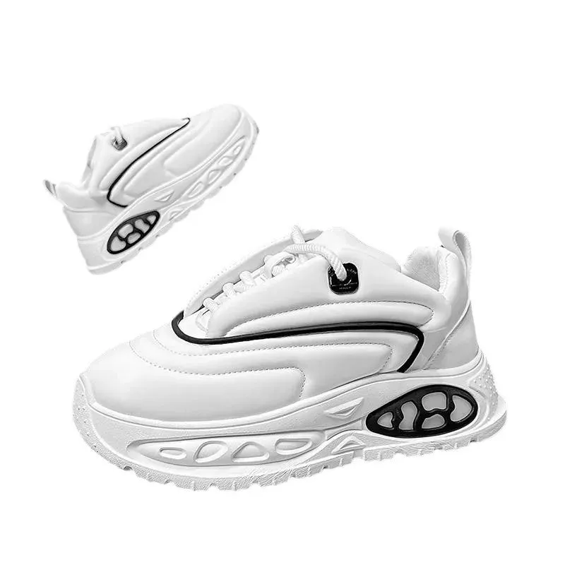 Turn heads in the Supreme Luxe Chunky Sneakers – White Edition. Designed for bold streetwear lovers, these sneakers feature a clean white upper with black detailing, a thick sculpted sole, and plush interior padding for maximum comfort. Perfect for casual wear or standout fashion statements.