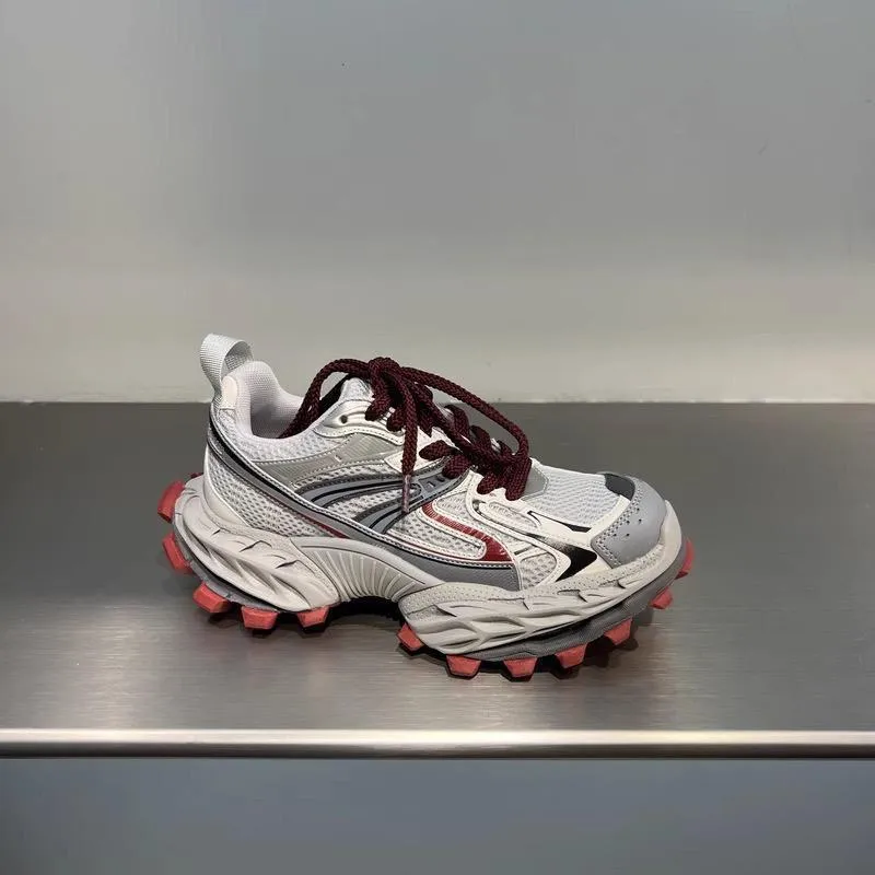 Thick-Sole Chunky Sneaker – White, Grey, and Red