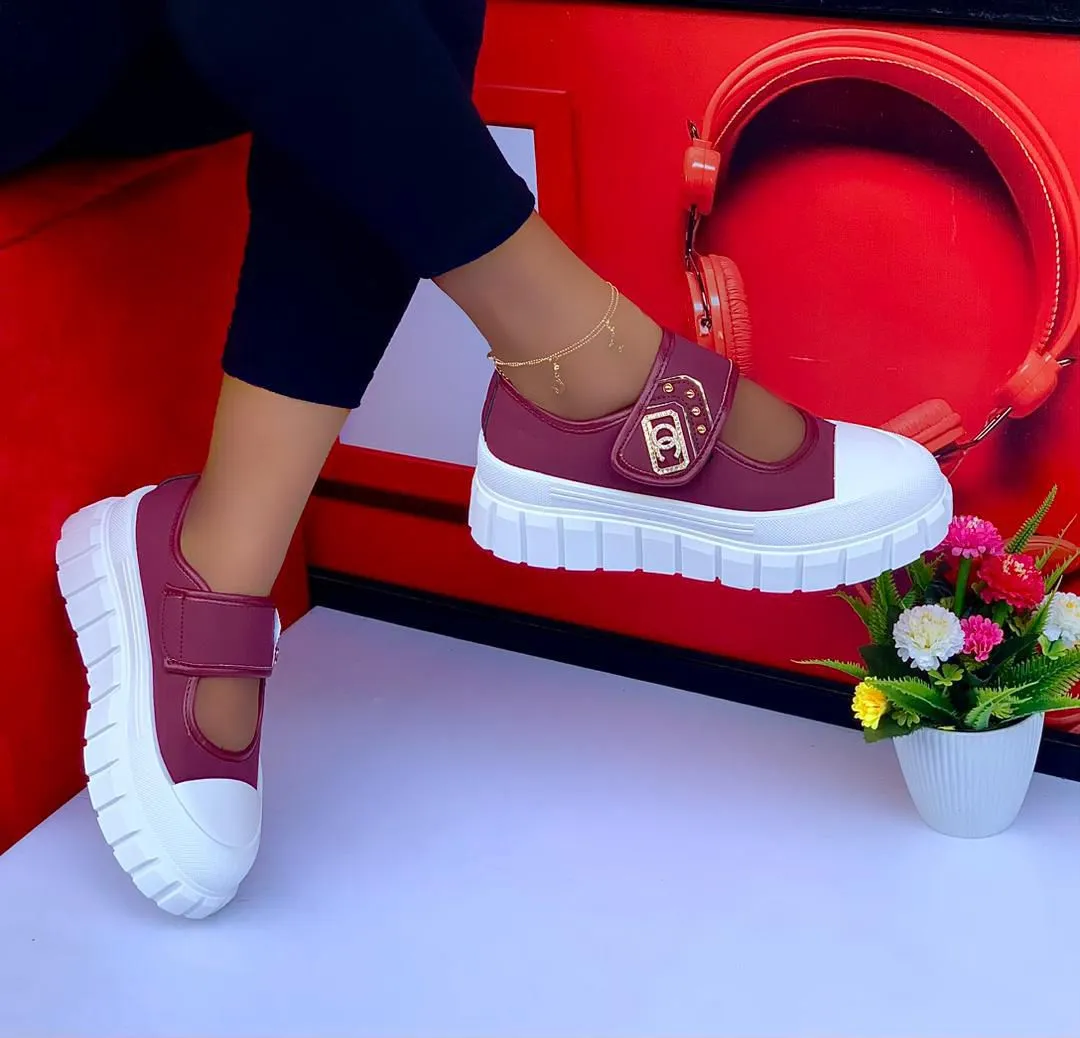 Women's Chunky Mary Jane Platform Sneakers – Burgundy/White