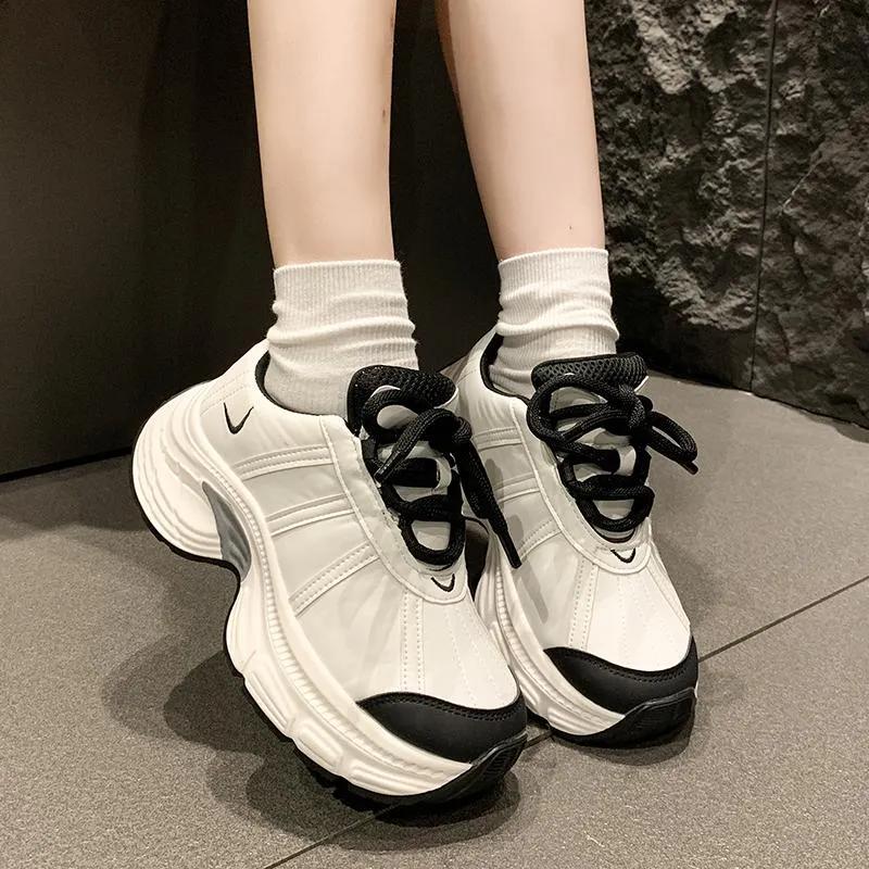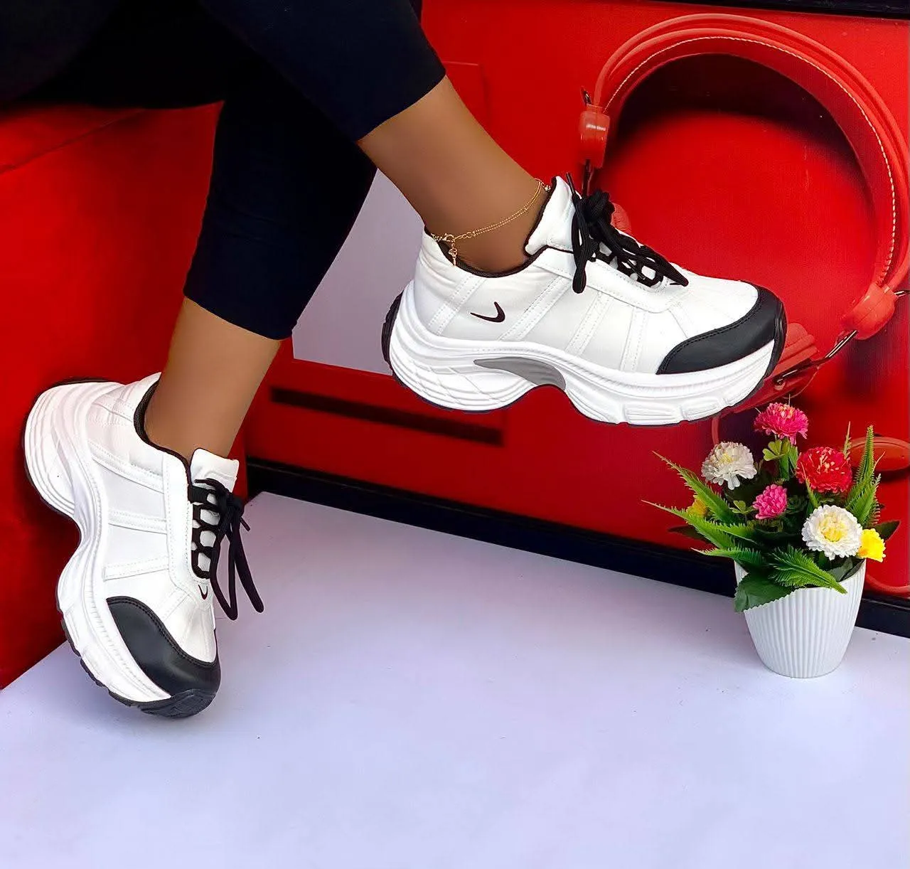 Experience the epitome of luxury and style with our Women's Luxury All-Black Platform Sneakers. Designed with an all-black exterior, these sneakers are sure to make a bold statement. The contrasting white platform adds a unique touch, enhancing your style quotient.
